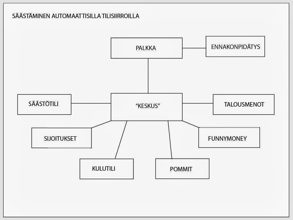 - KESKUS, kaiken keskipiste. Tänne saapuu palkka ja täältä lähtevät siirrot muille tileille